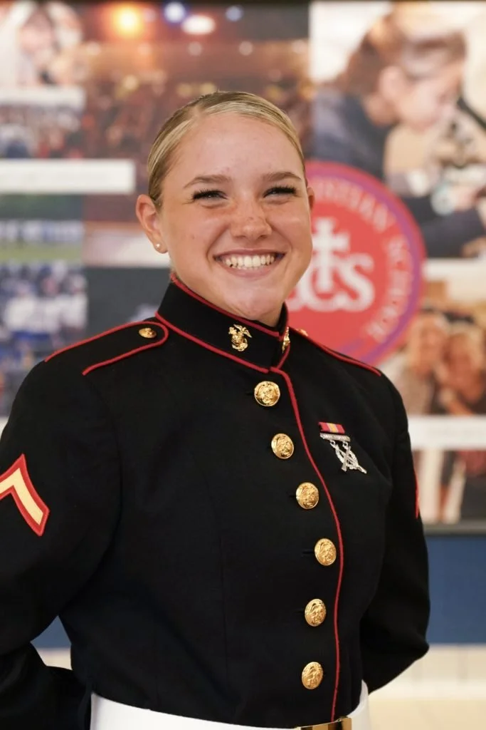 From that moment on, she began to prepare herself mentally, physically, spiritually, and emotionally for her service as a Marine. Anyone who saw her on the soccer or powder puff football teams can attest to her grit and physicality on the field of play. “Yeah, I got a few [penalties for being rough].” As she looks back, she also sees how her experiences in school helped prepare her for the mental challenges of the Marines. “[Boot camp] is a huge mental game,” she said. “You have to push yourself very hard… further than you ever have before. Your body follows suit. At LCS, I learned how to keep my focus on God and not on the hard things in life. I felt prepared for the challenges I faced and how to handle them well.”